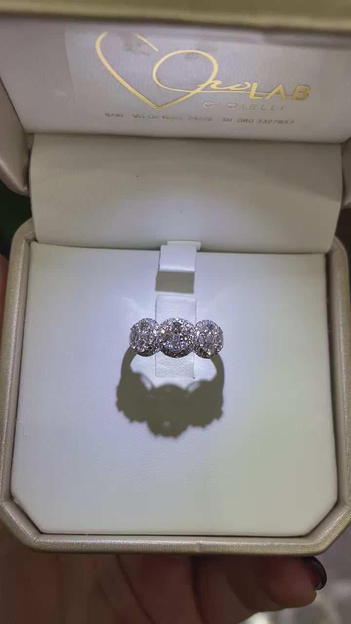 Anello in oro bianco 18Kt con magic di diamanti naturali da 0,77ct che costituiscono un trilogy.